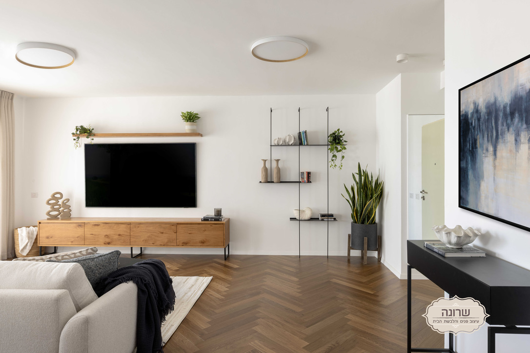 תכנון, עיצוב והלבשת דירת קבלן סטנדרטית בהוד השרון, שהפכה לבית ייחודי, מותאם אישית ומלא אופי.